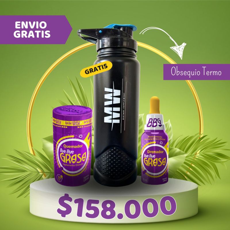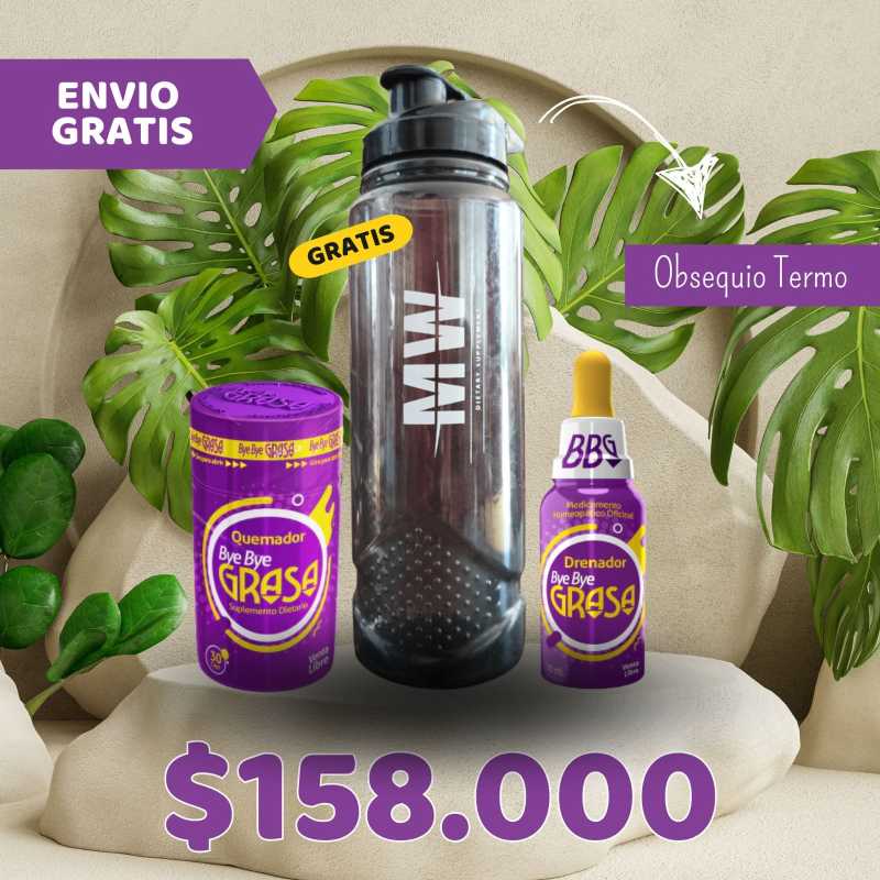Combo Bye Bye Grasa - 1 Quemador + 1 Drenador + 1 Obsequio Termo
