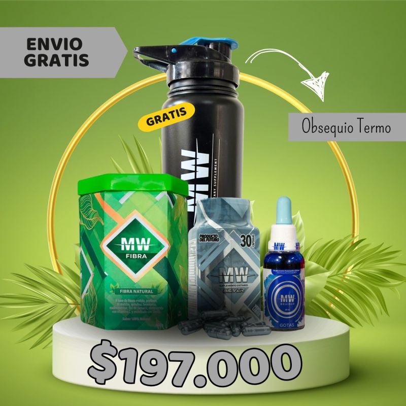 Combo MW Silver / 1 Quemador + 1 Drenador + 1 Fibra en Tarro + Obsequio 1 Sachet de Gel Fría + Obsequio 1 Termo